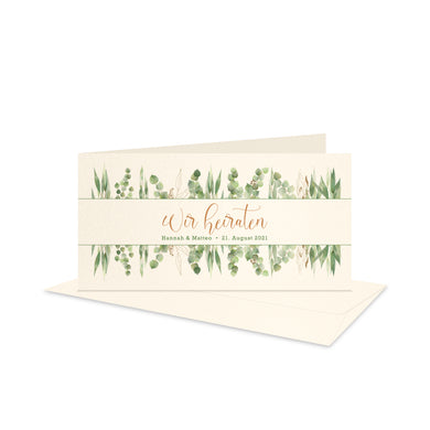 Hochzeitskarte DIN lang Floral 5 naturweiss