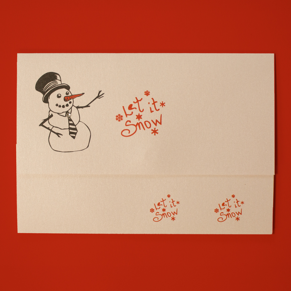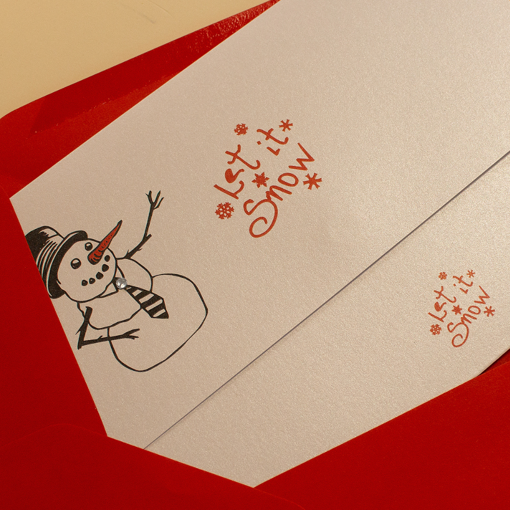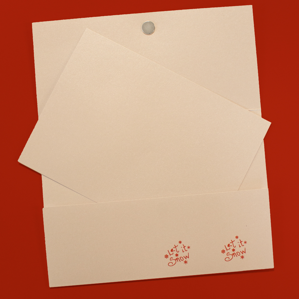 Weihnachtskarte "Let it snow, let it snow, let it snow" Perlmutt weiß, B6 Querformat, mit Strassstein und Magnetverschluss inkl. Einlegekarte und Kuvert in Rot